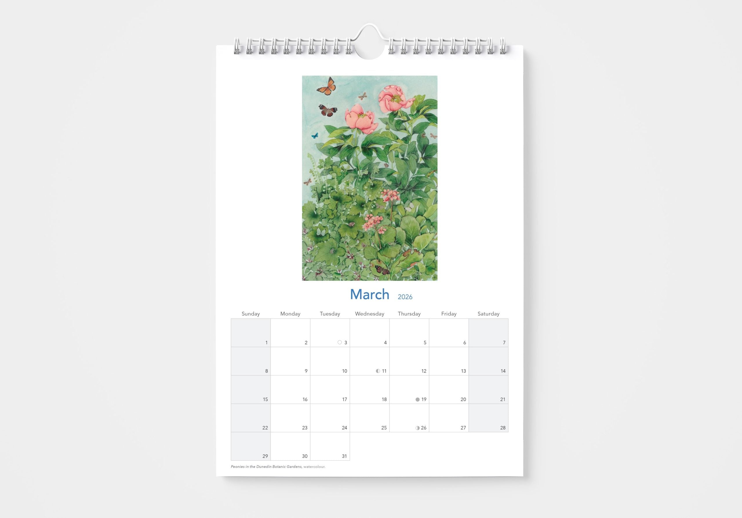 Measures 320 x 230 mm. Each month has boxes for each day to record your diary dates. Calendars are twin loop wire bound and hang from the top.