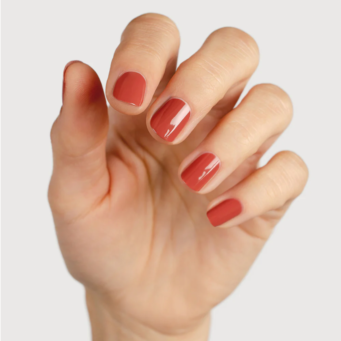 Ravishing red nail polish that takes a walk on the neutral side.