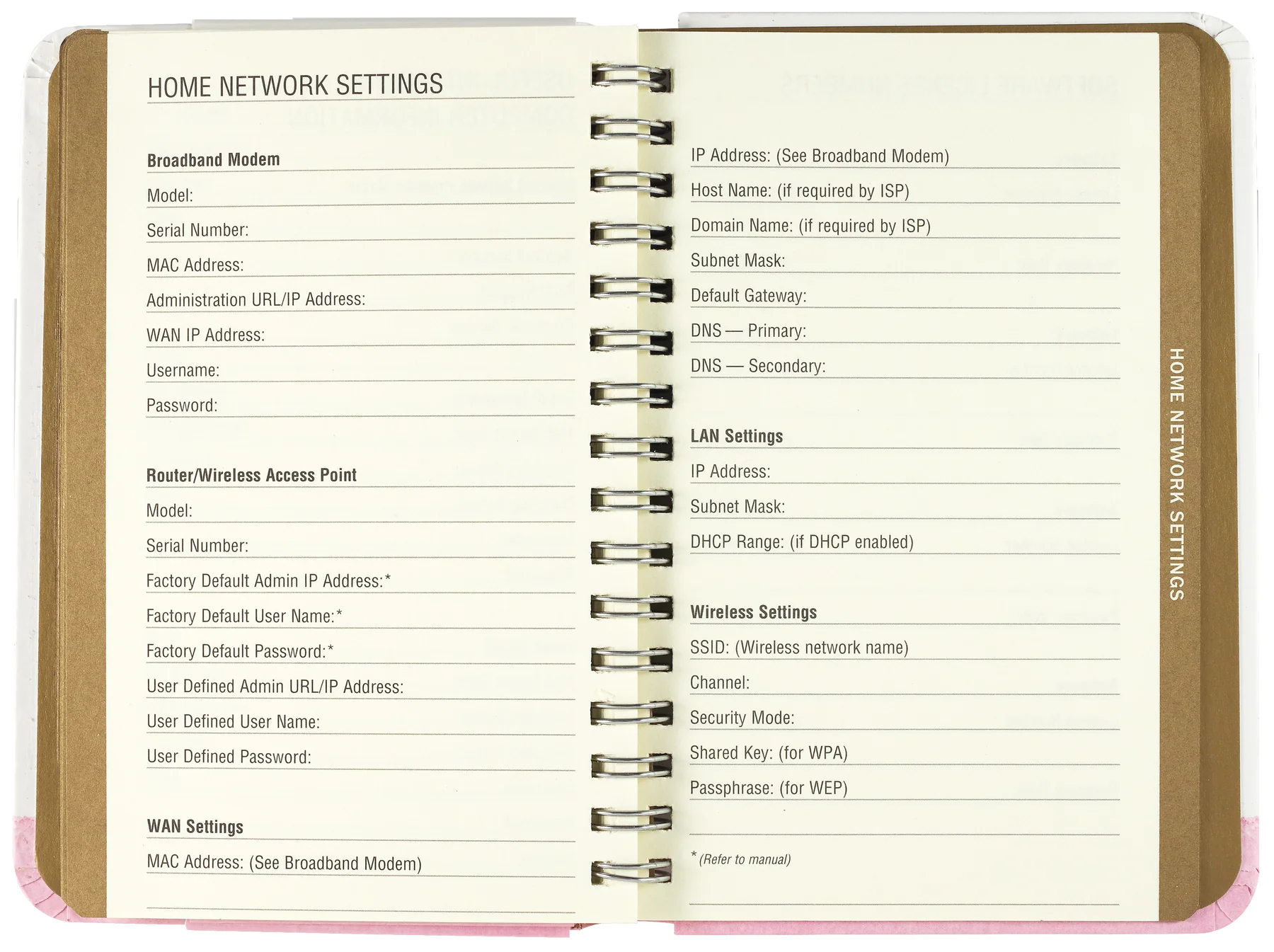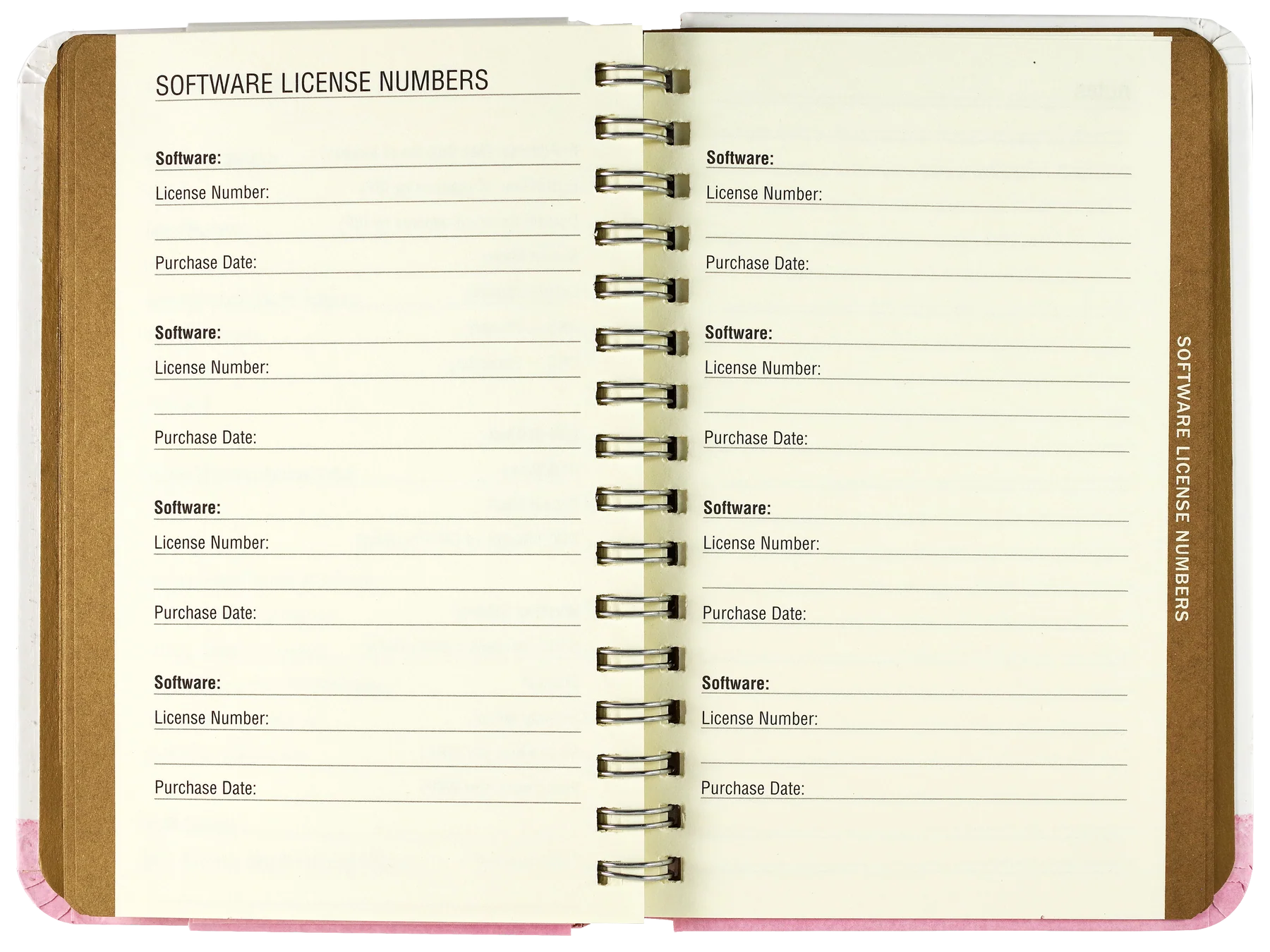 - You can also make notes about home network configurations, software license numbers, etc., in pages in the back of the book.