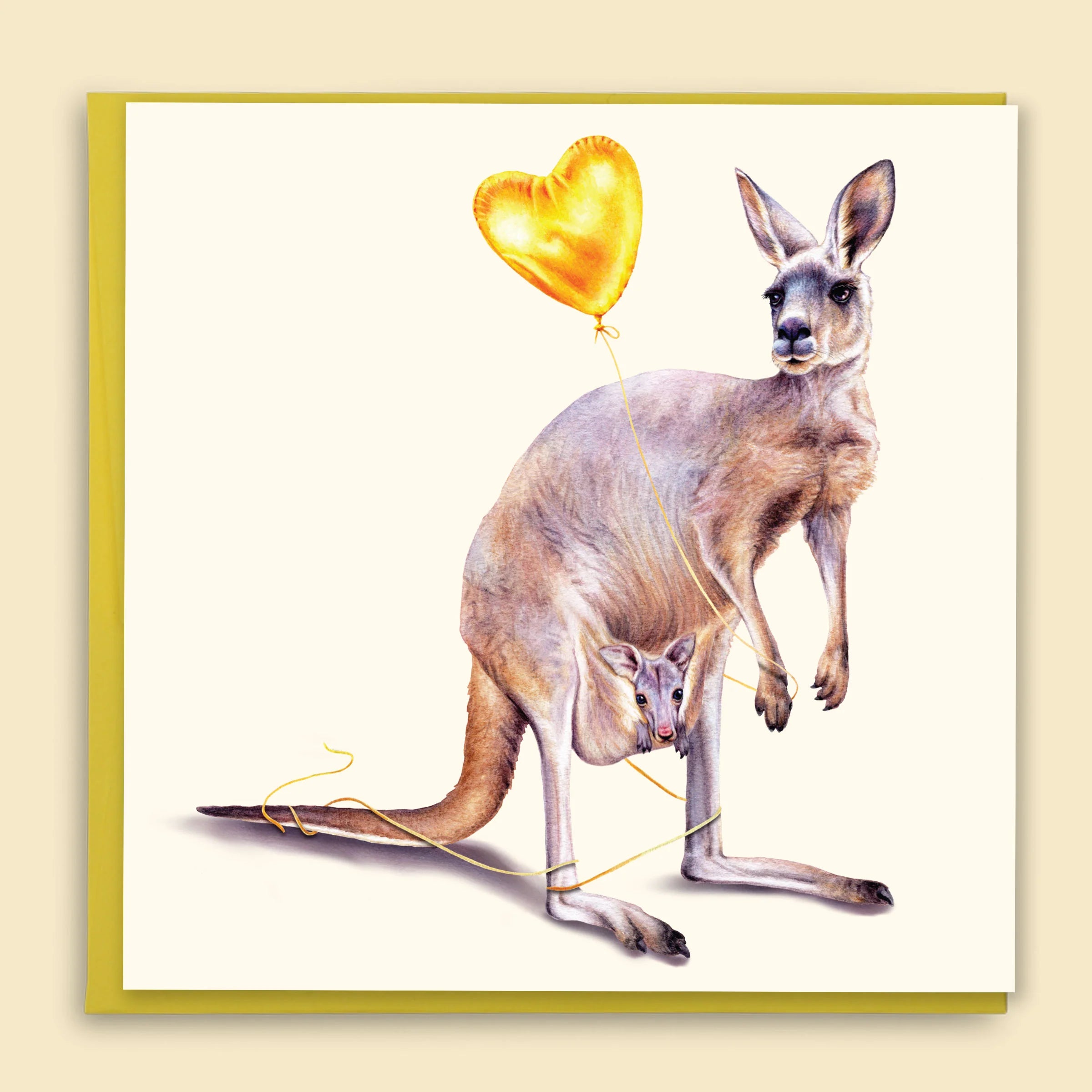 Kangaroo With Balloon Blank Card Sale! from 995 /per Qty. Add to Cart This item is currently on backorder but you can still purchase it now and we'll ship as soon as more become available. Watercolour Illustration by Heidi Willis Includes plantable seed paper confetti Novelty Fortune Printed on 100% PEFC-Certified paper 140 mm x 140 mm when folded Bespoke Colourful Envelope Made with Heart & Hand in Australia