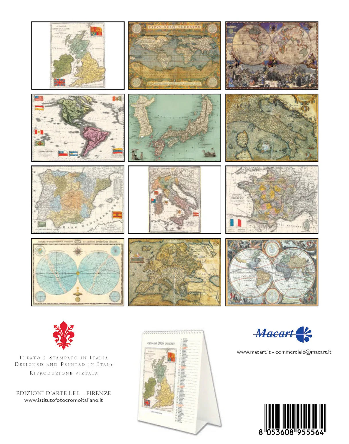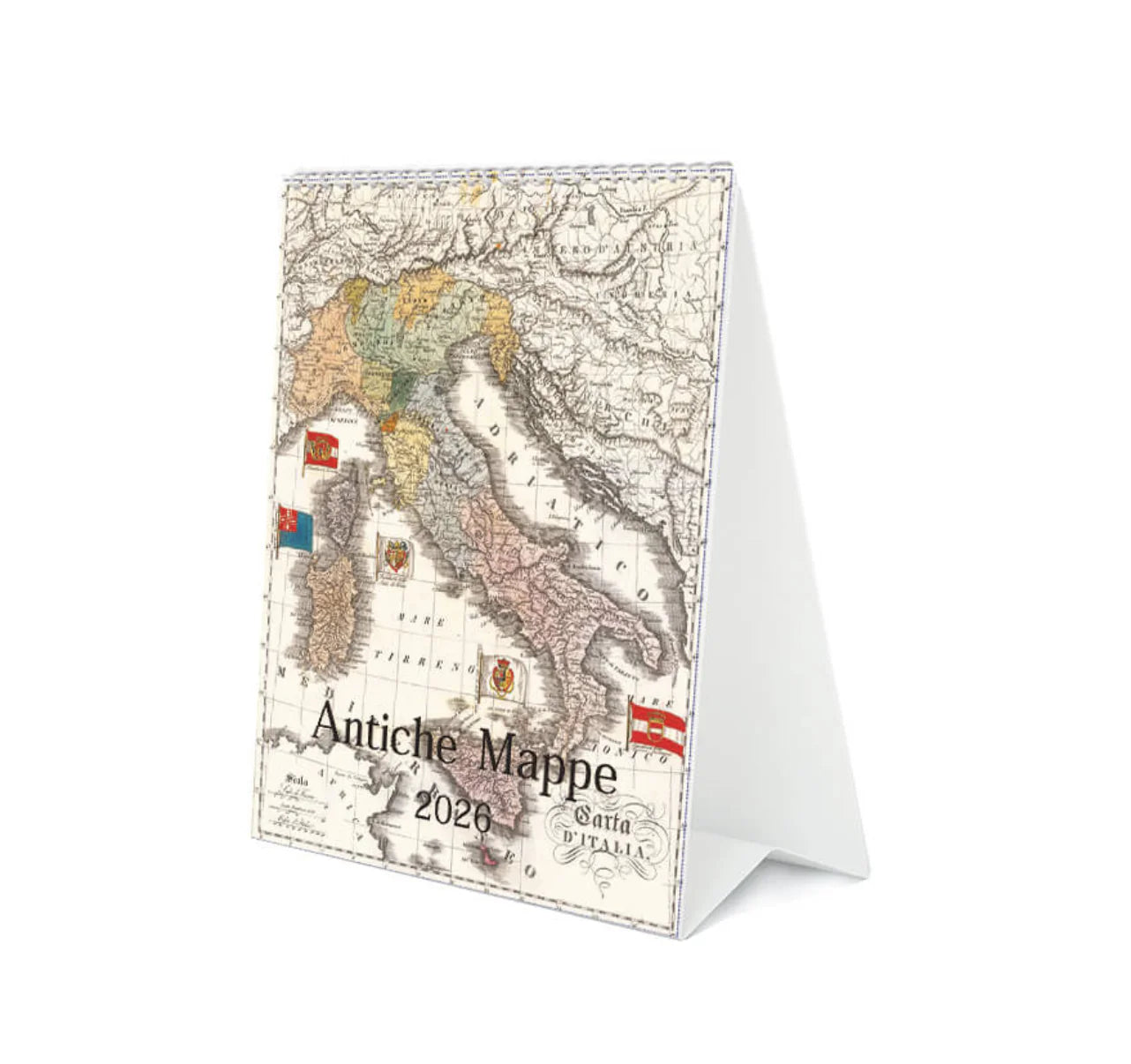 2026 Desk Calendar - Antiche Mappe Sale! from 2295 /per Qty. Add to Cart This item is currently on backorder but you can still purchase it now and we'll ship as soon as more become available. Size: 13.5 x 17 cm Made in Italy 12 vintage style map illustrations Premium Italian ivory paper High-resolution colour printing