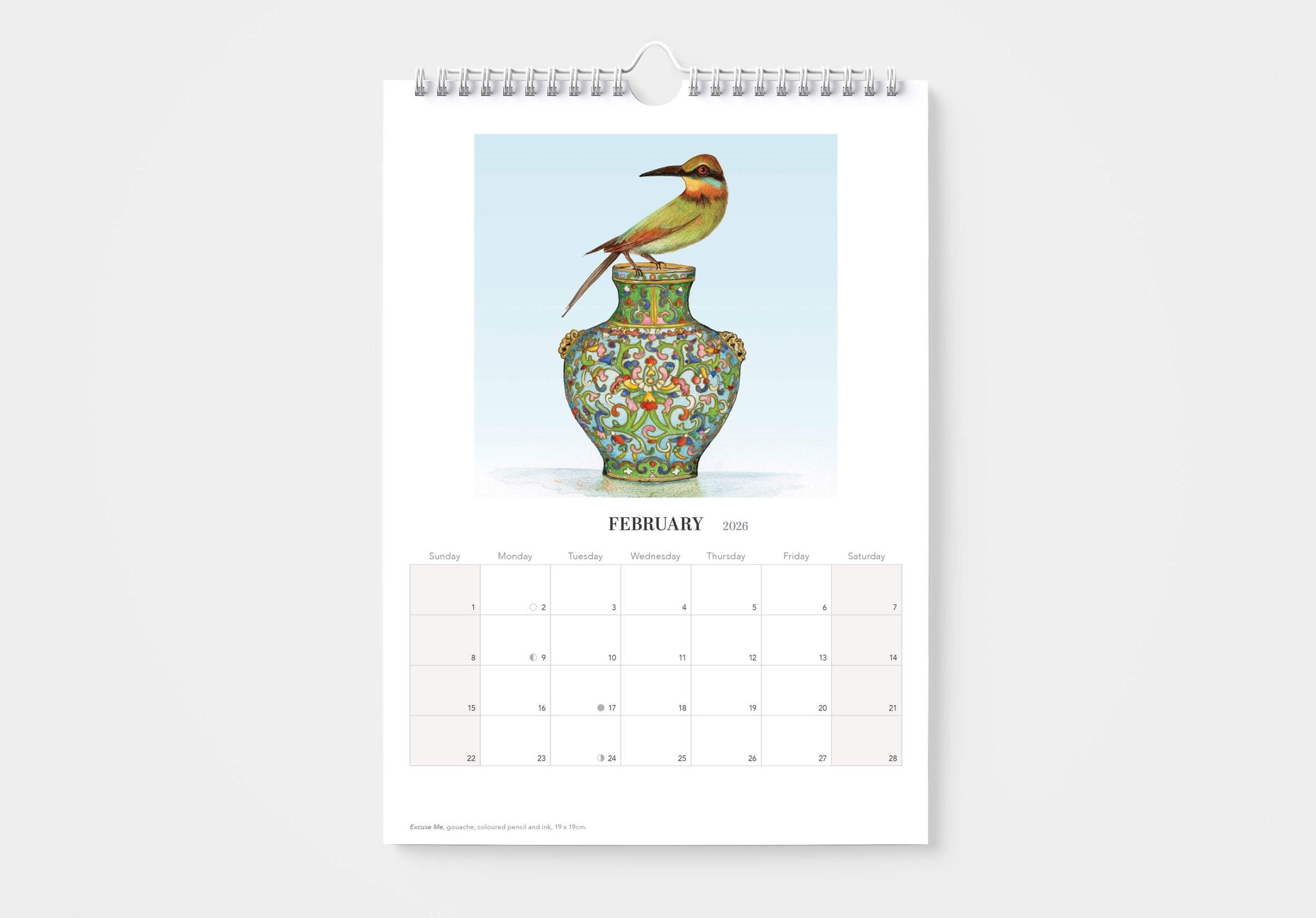 Measures 320 x 230 mm. Each month has boxes for each day to record your diary dates. Calendars are twin loop wire bound and hang from the top.