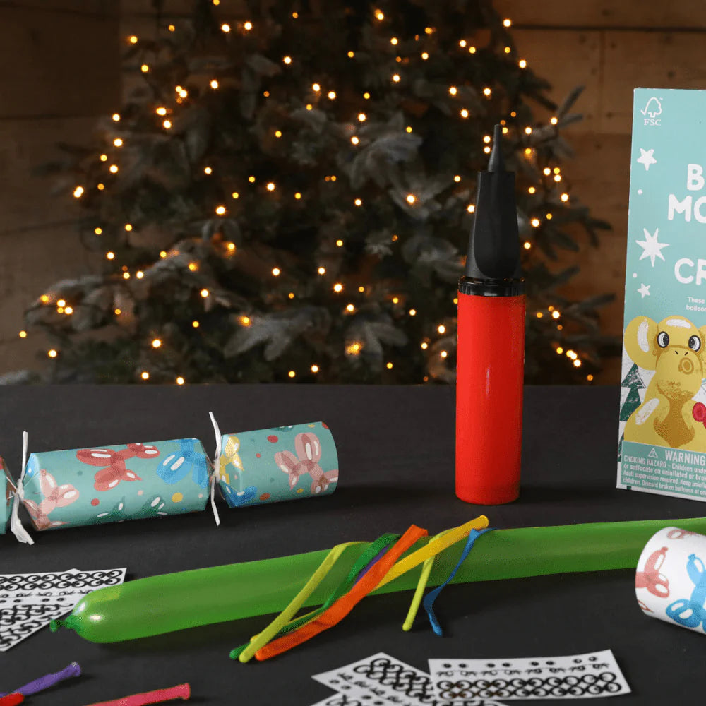 Bring a burst of fun to your family festivities with our Balloon Modelling Game Crackers. This playful set of 6 crackers, features a whimsical balloon modelling design. Each cracker contains multicolored balloons, instruction sheets, a charming raffia tie, a hat, a spirited snap, and a lighthearted joke or motto.