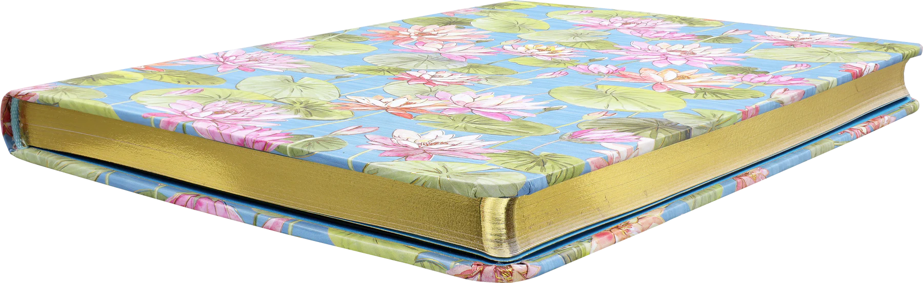 - Water lilies, symbols of serenity and renewal, grace its covers.