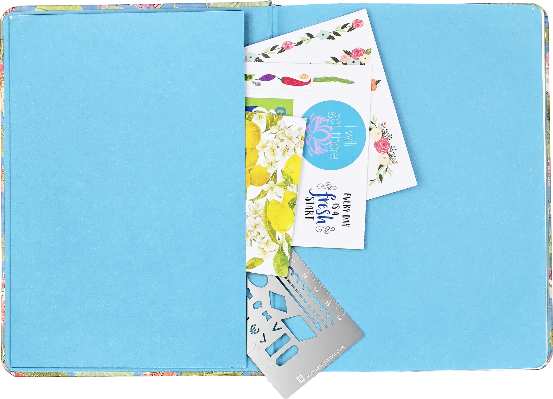 - Tuck notes and keepsakes within the expandable pocket inside the back cover.