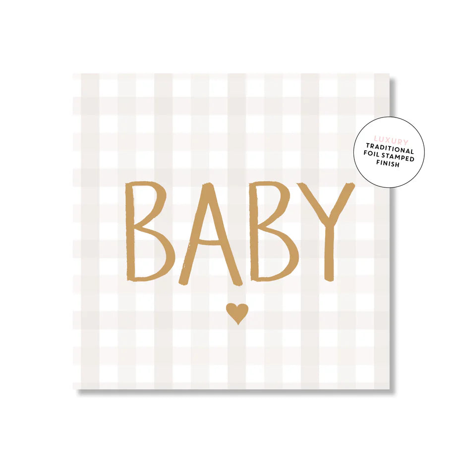 Mini Card - Baby Beige Gingham Sale! from 495 /per Qty. Sold Out This item is currently on backorder but you can still purchase it now and we'll ship as soon as more become available. Blank inside Finish gold foil-stamped Size 95 x 95mm (folded) Weight 325gsm Stock premium stock Envelope white