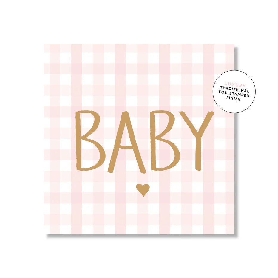 Mini Card - Baby Pink Gingham Sale! from 495 /per Qty. Sold Out This item is currently on backorder but you can still purchase it now and we'll ship as soon as more become available. Blank inside Finish gold foil-stamped Size 95 x 95mm (folded) Weight 325gsm Stock premium stock Envelope white