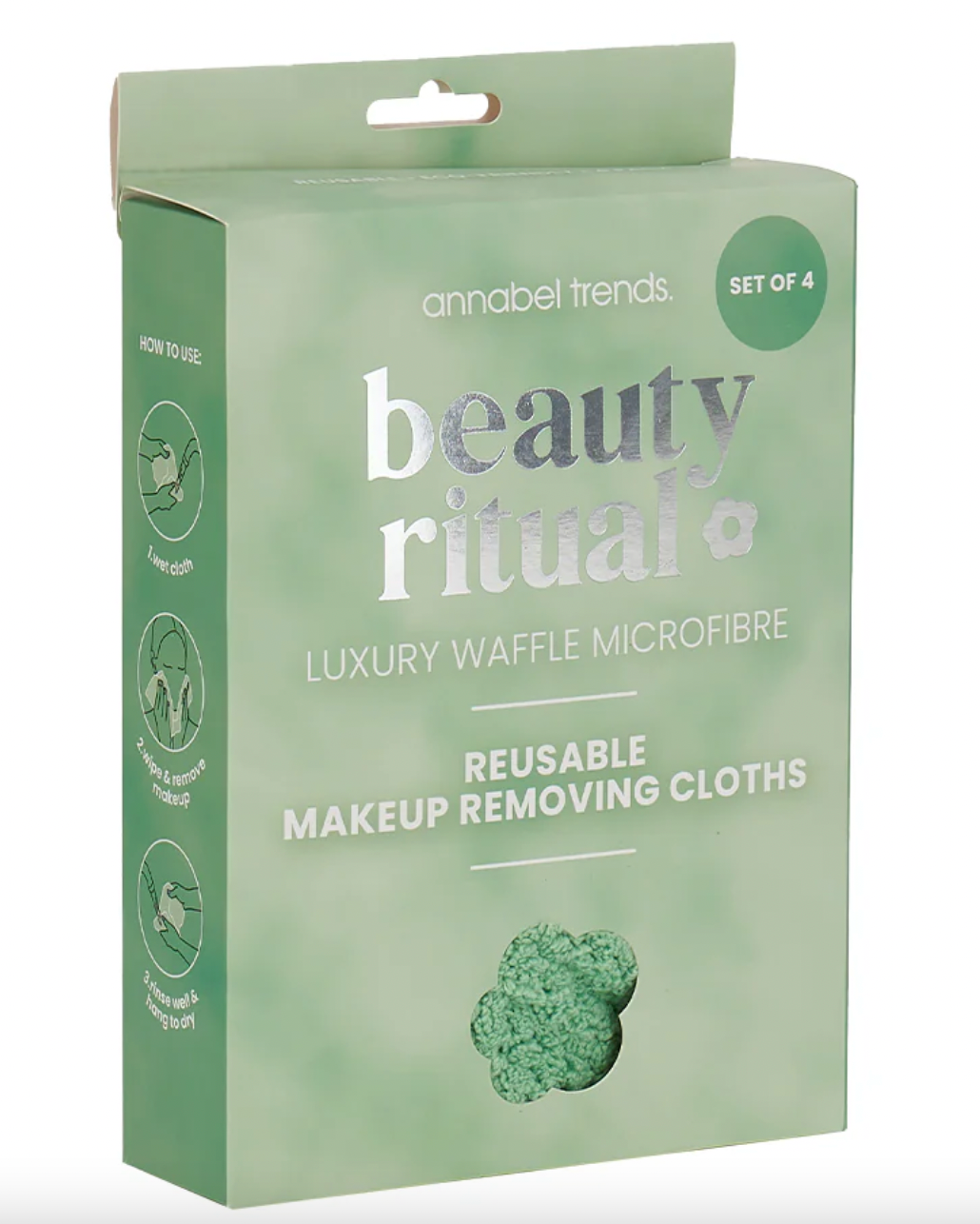 Luxury Waffle Microfibre Reusable Makeup Removing Cloths 4pc - Moss
