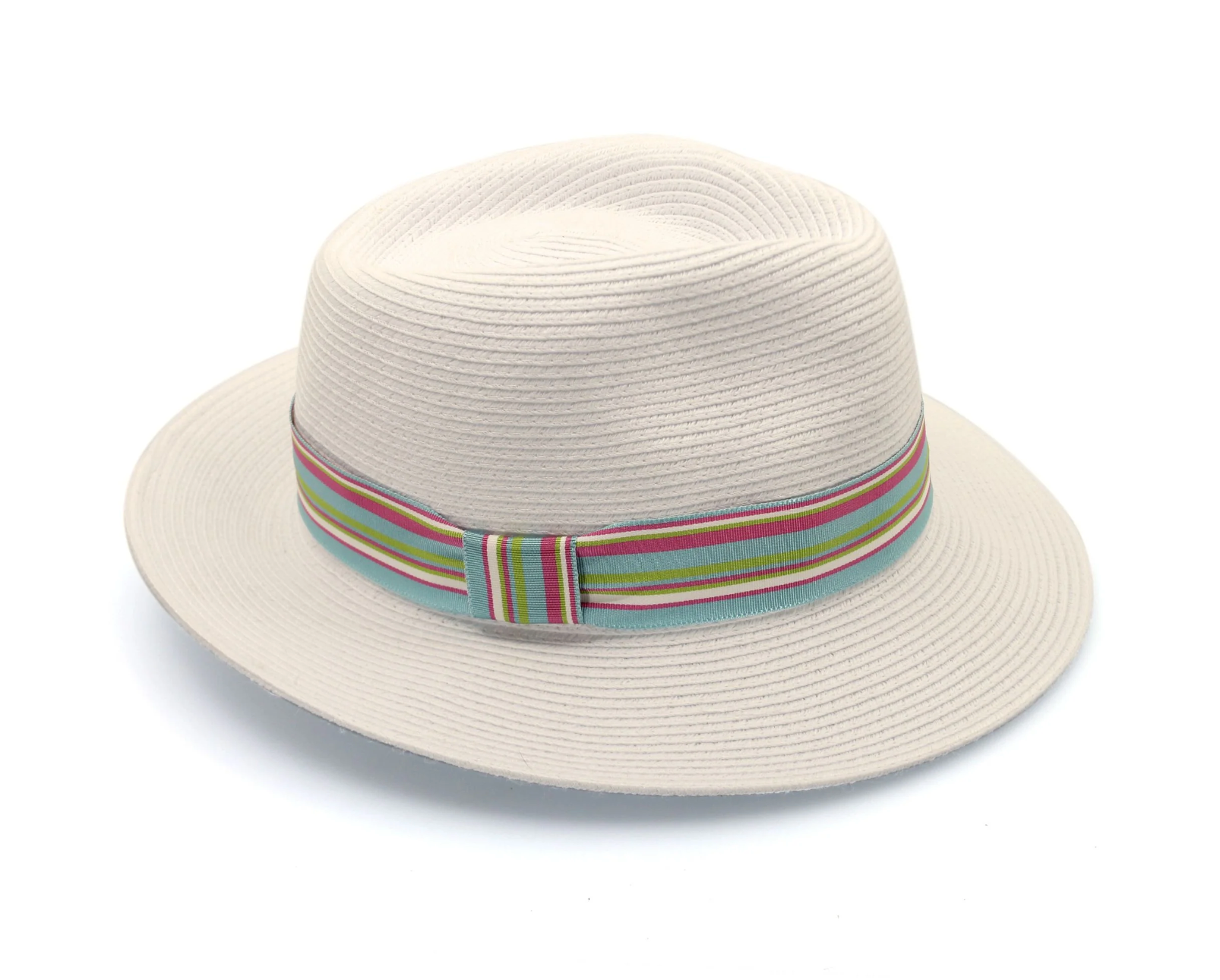 Stand out from the crowd with the ever-so-chic Peregian Fedora. Ivory Flexibraid® with a bold striped band in pinks and blues, this striking hat can be used on the golf course with it’s a built in magnetised golf marker, or take you to an afternoon lunch with the girls with style! UPF50+, internal ComfyFit adjustment & Australian made.