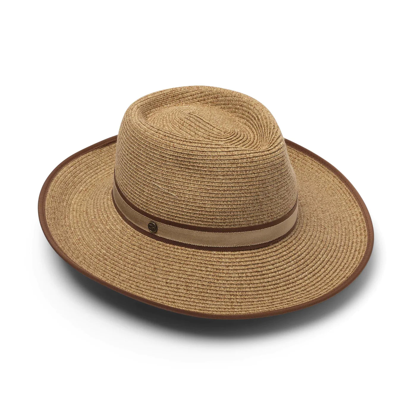 Working from a traditional Trilby shape, the Royston features a wider 7cm brim to ensure UPF50+ sun protection. The brim of the Camel Flexibraid® is edged in rust and the double layer rust and tan headband surrounds the 9.5cm crown and a signature DH antique bronze stud on the right-hand side of the headband. An internal ComfyFit adjustor conforms to your head size.