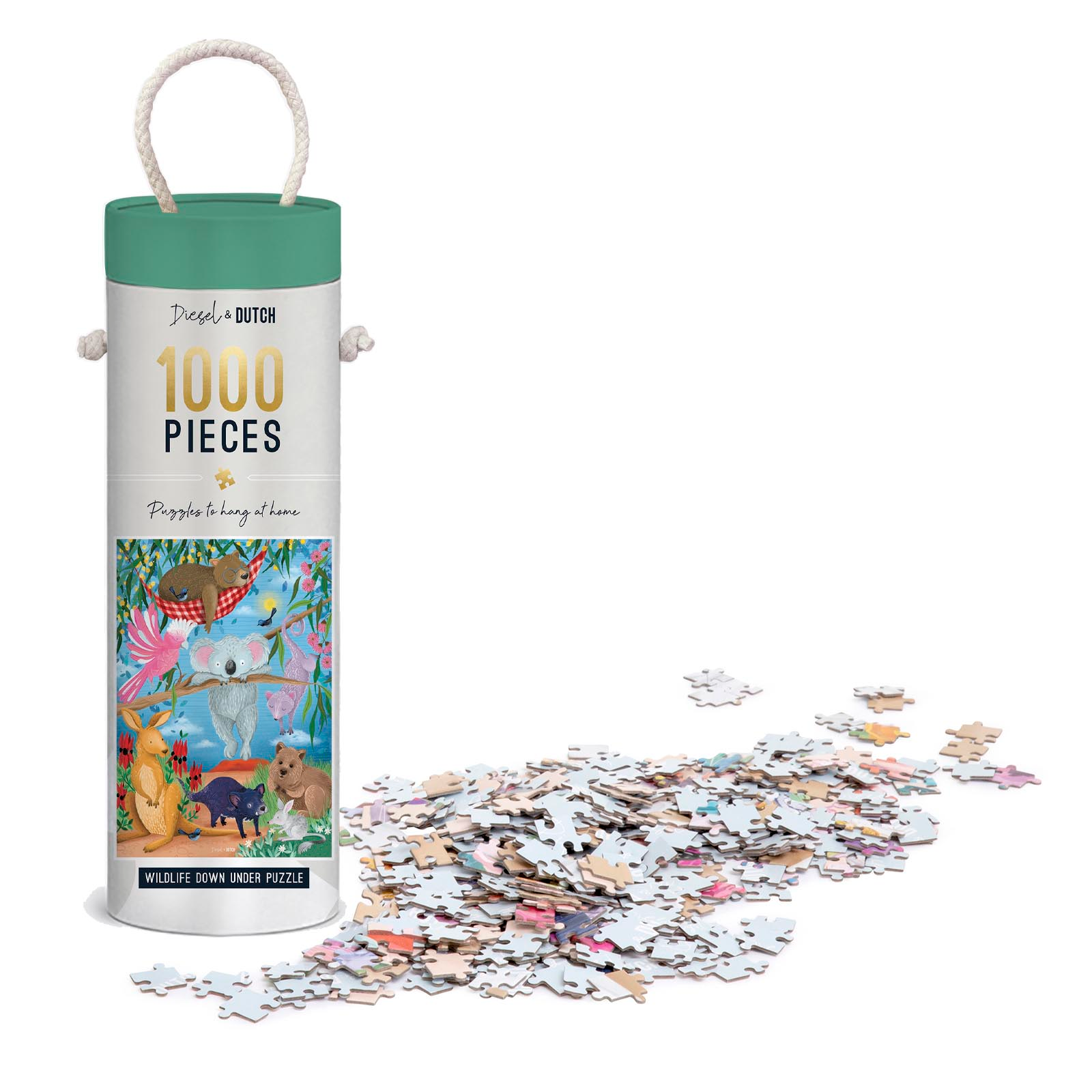 This vibrant jigsaw illustrates a whimsical Australian wildlife scene filled with lush eucalyptus, bright flowers, and a warm outback landscape. The playful artwork features our most loved native animals engaging in endearing activities with some resting peacefully, hanging from branches, or attentively observing their surroundings. Soft textures, rich colors, and intricate details bring the scene to life, creating a delightful and engaging puzzle.