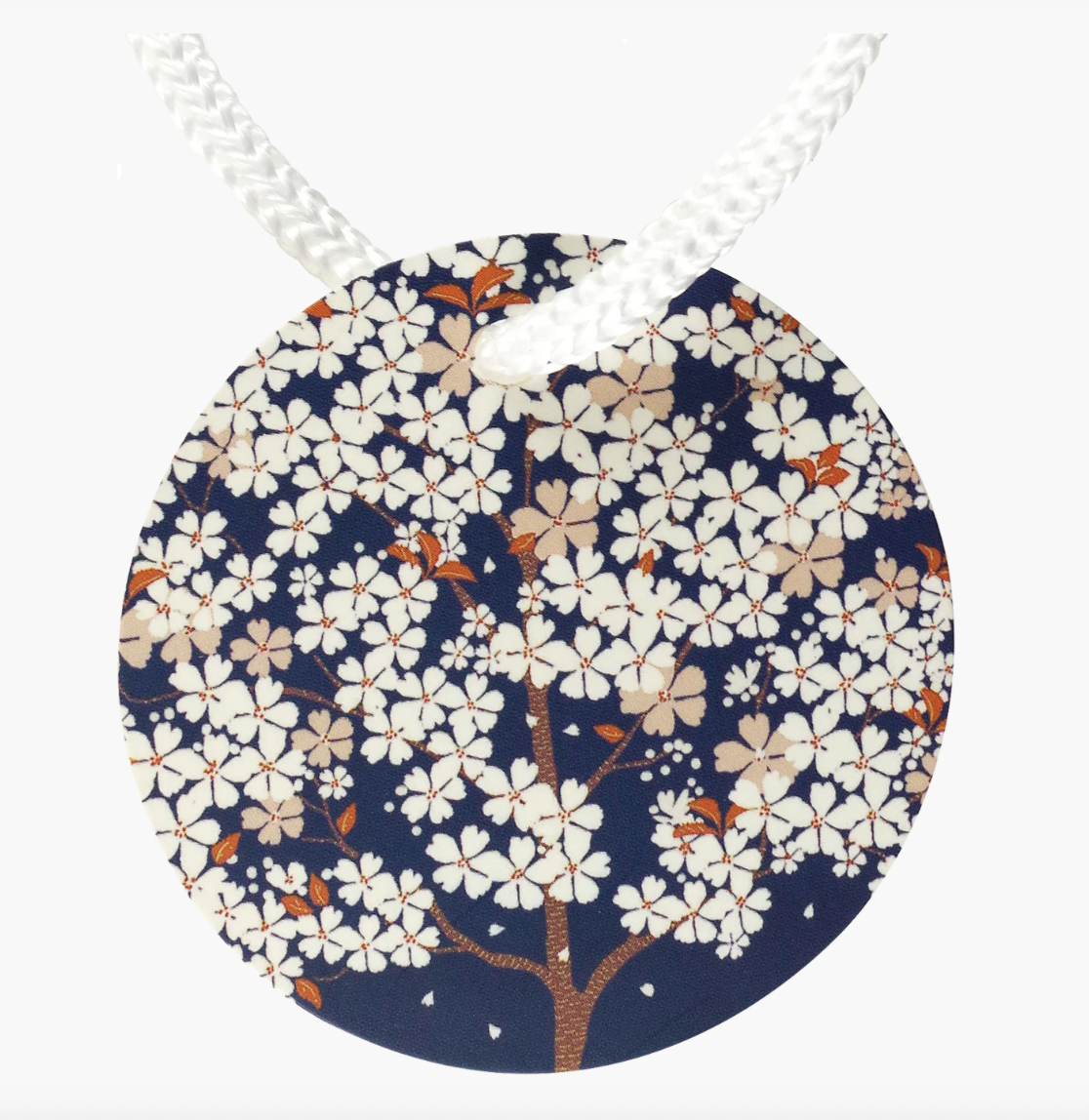 - Striking design depicts a tree in bloom, petals whirling through a deep blue sky.