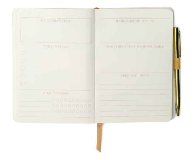 Cultivate a practice of kindness with the DesignWorks Ink Gratitude Journal -Attitude of Gratitude. This gratitude journal includes 196 guided interior pages to assist you in your mindfulness journey. Easily find the time to unwind and reflect with prompts for daily thoughts, goals, and gratitude. Includes a ribbon marker so you never lose your place and a pen so you are always prepared to document the day. This small journal is easily packed in a carry-on, purse, or backpack to stay on track through trips and travel.
