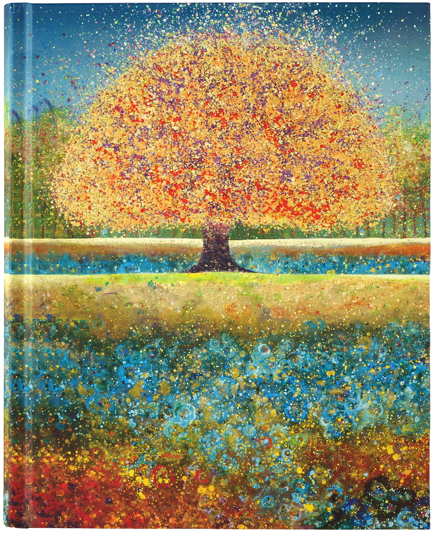 - Touches of gold foil illuminate the cover image of an autumnal tree.
