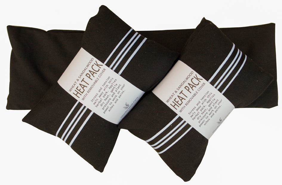 Great to soothe away stress and tired muscles. Now with sandalwood and wheat. Packaged in a removable black fabric cover with black and white grosgrain ribbon trim.