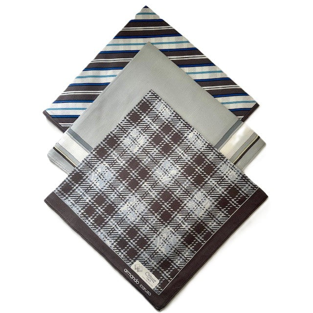 Traditional Design Pack of 3 Mens Handkerchiefs Sale! from 3995 /per Color Blue/Brown/Grey Blue/Dark Blue Brown Black/White Blue Qty. Add to Cart This item is currently on backorder but you can still purchase it now and we'll ship as soon as more become available.