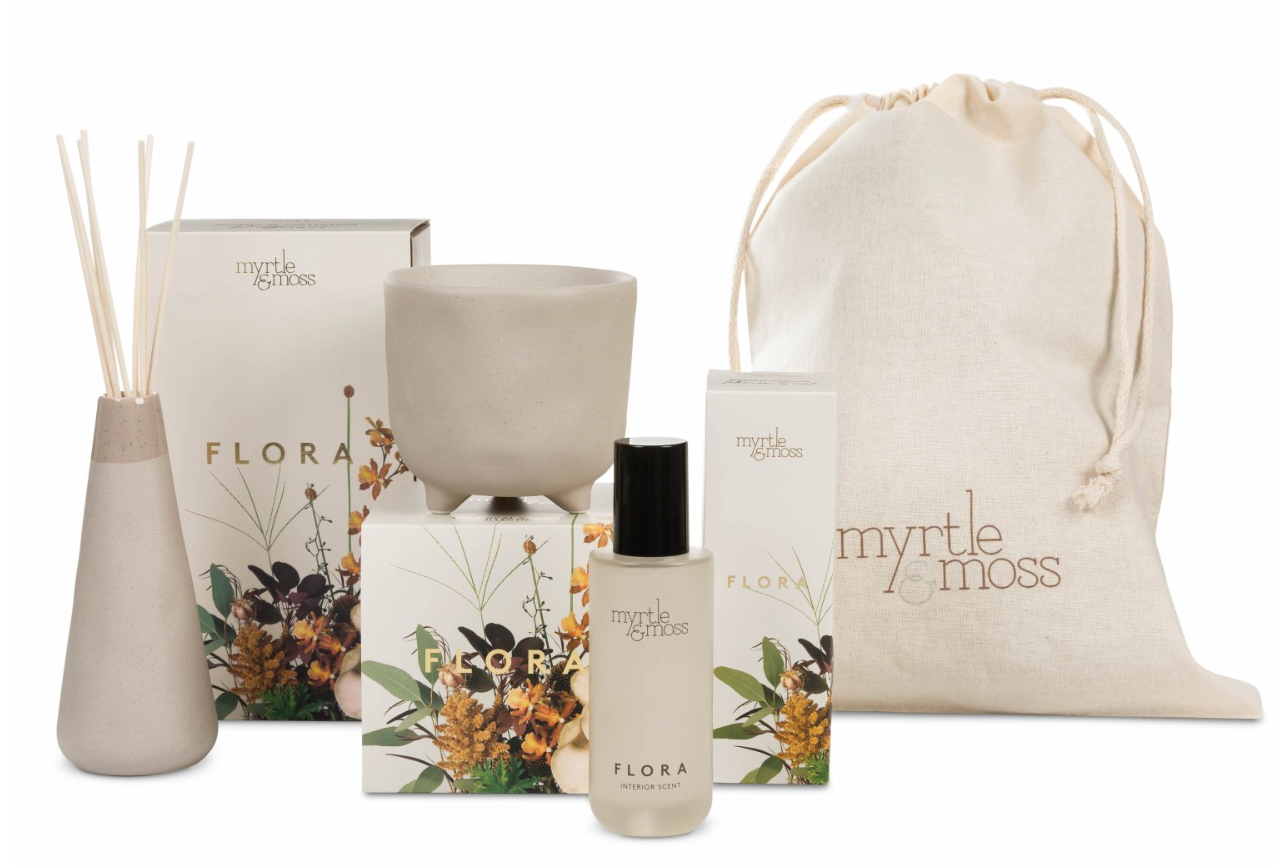 Containing the hero products from the Botanical Collection. 1 x Botanical Candle, 1 x 185ml Botanical Diffuser, and 1 x Botanical Interior Scent. Valued over $158. Packaged in a Myrtle & Moss calico bag.