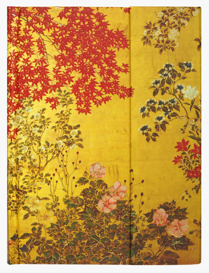 - Trees and flowering plants are embossed and embellished with subtle gold foiling.