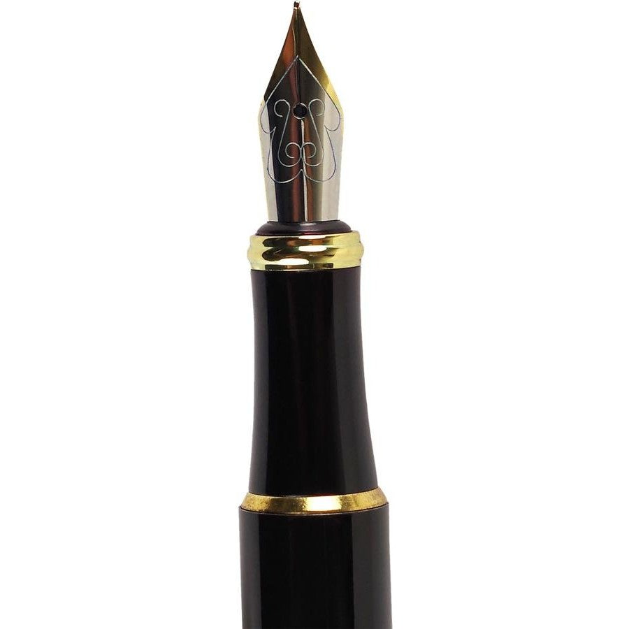 Elegant fountain pen glides over the page, providing a controlled fine line and true writing pleasure.