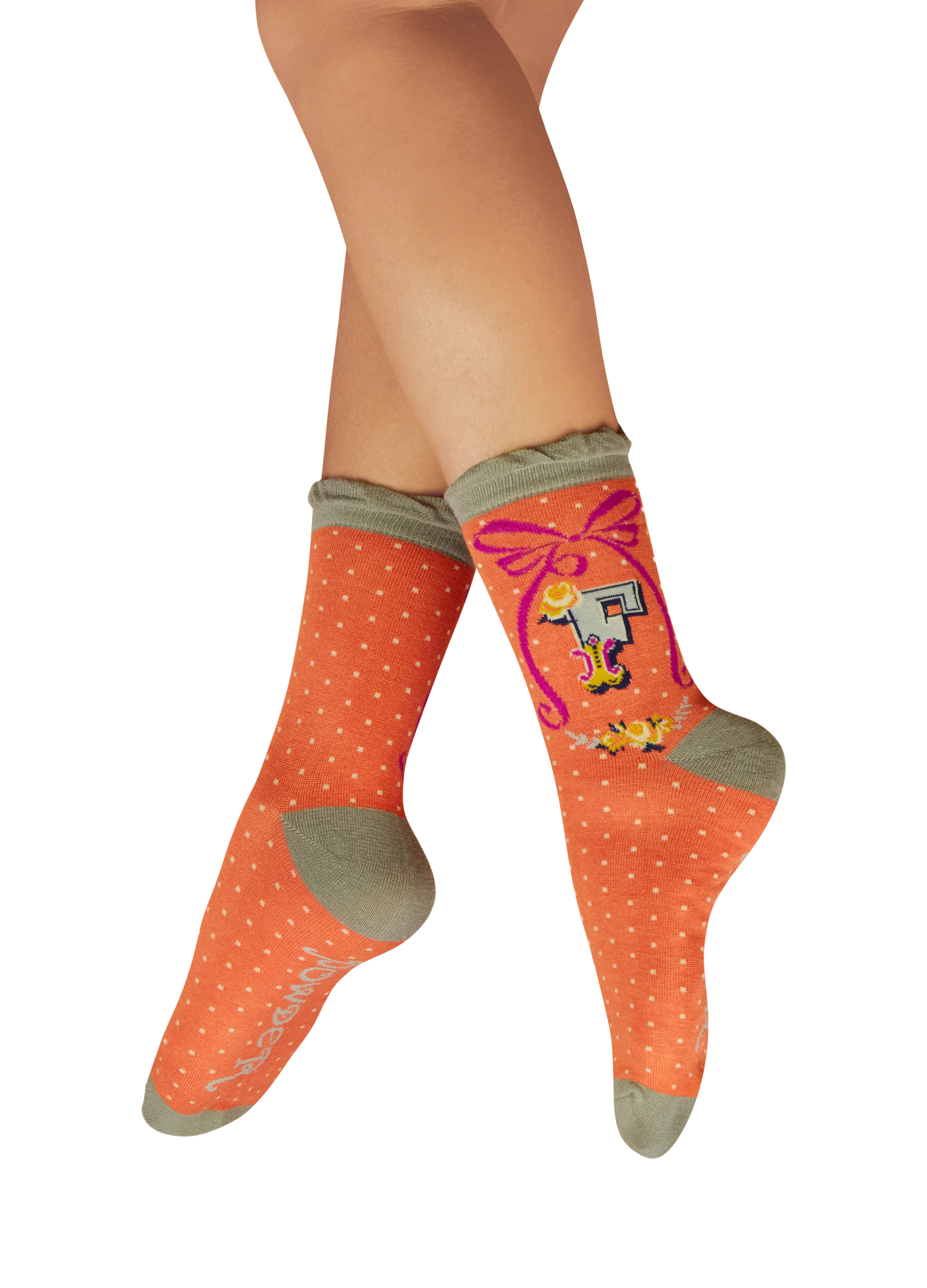 Letter Ankle Socks - F Sale! from 2495 /per Qty. Add to Cart This item is currently on backorder but you can still purchase it now and we'll ship as soon as more become available. Made with bamboo, these best selling extra-soft women's monogrammed ankle socks will keep your feet stylish and warm. Measurement: Ladies Shoe Size 4-9 Fabric: 65% bamboo, 15% cotton, 10% nylon, 10% elastane SKU:5060548947156