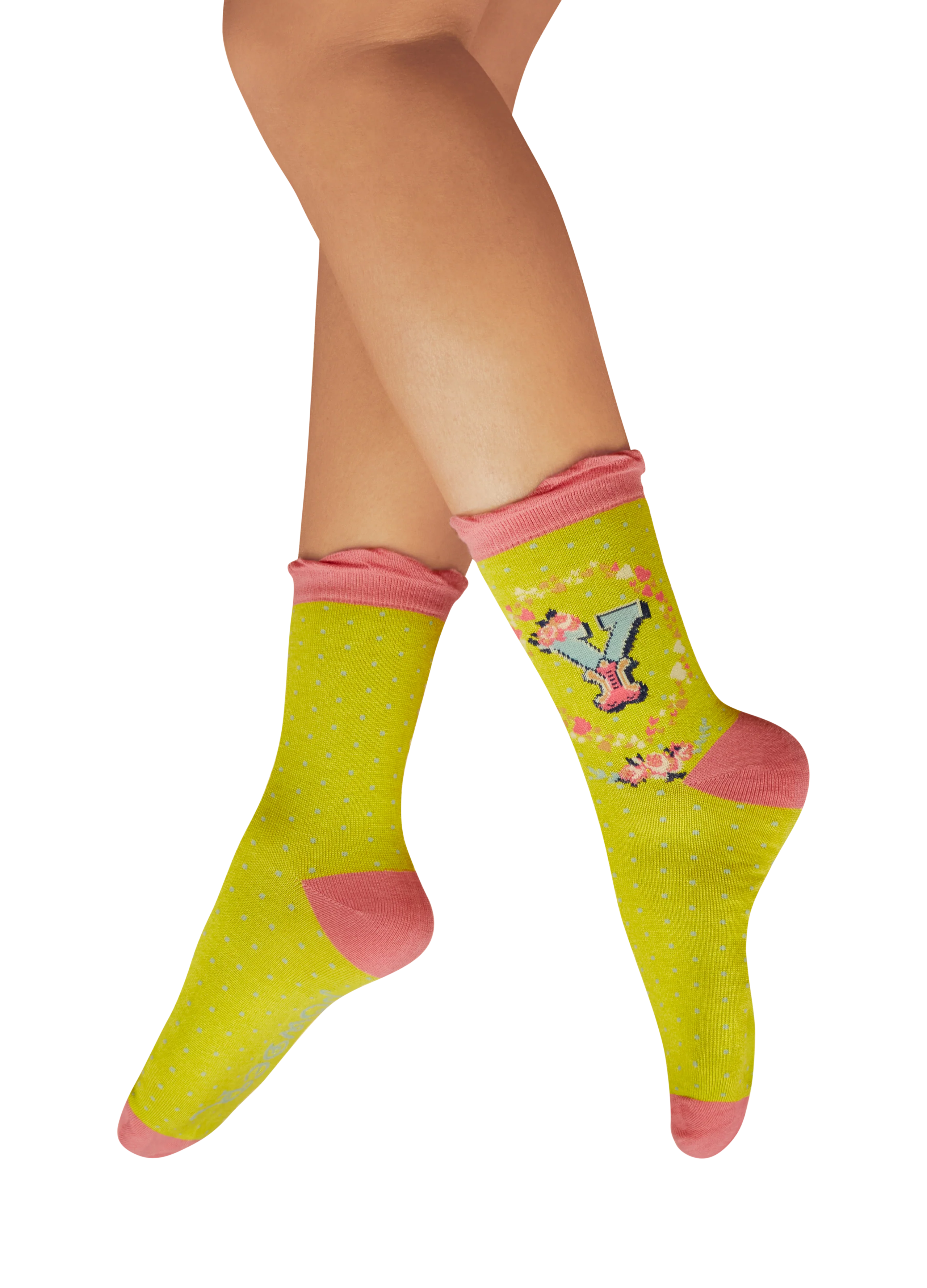 Letter Ankle Socks - Y Sale! from 2495 /per Qty. Sold Out This item is currently on backorder but you can still purchase it now and we'll ship as soon as more become available. Made with bamboo, these best selling extra-soft women's monogrammed ankle socks will keep your feet stylish and warm. Measurement: Ladies Shoe Size 4-9 Fabric: 65% bamboo, 15% cotton, 10% nylon, 10% elastane SKU:5060548947347