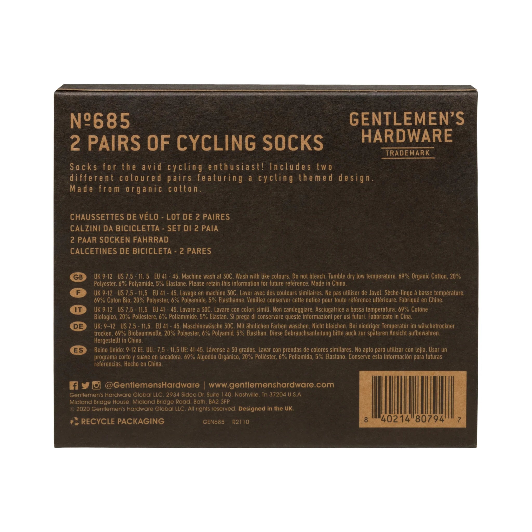 Give a practical gift for the bicycle enthusiast and pedaler in your life with the Set of 2 Bike Crew Socks from Gentlemen's Hardware. Have some fun with a pop of color for a casual ride or daily commute wearing this pack of two pairs of soft combed cotton socks. Enjoy these cycling socks while out for a ride or grinding at your 9-5.