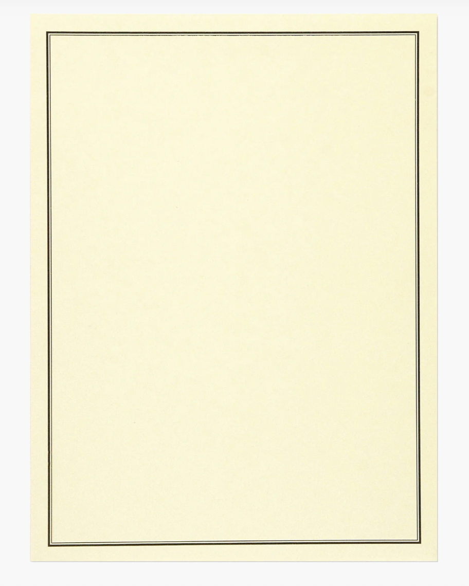 - Each crisp stationery sheet features an embossed black border embellished with gloss highlights.